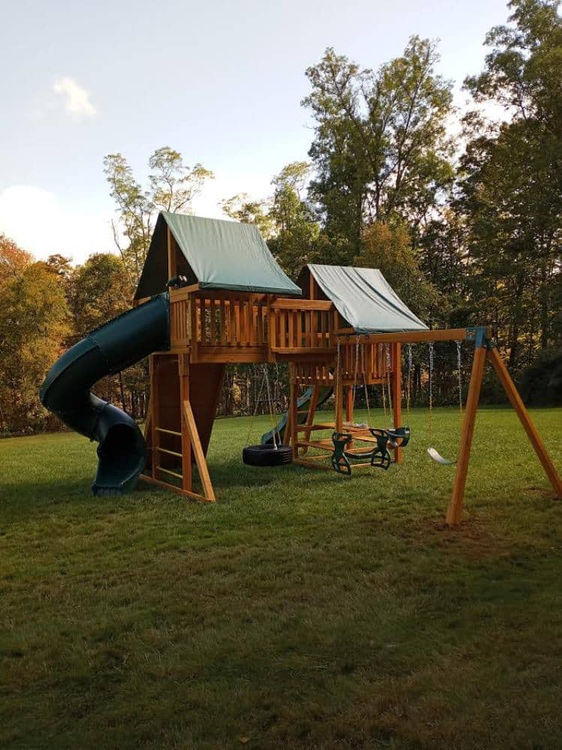 - Footprint30' x 15'Material100% CedarFrameEasy 1-2-3 A-Frame BracketSwing HangersHeavy-Duty Swing HangersSwing Chain MaterialPlastisol Coated Swing ChainsSwing PositionsFour Total Swing PositionsLadder & Monkey Bar MaterialPowder-Coated Steel Ladder and Monkey Bar RungCanopy MaterialHeavy-Duty Vinyl Canopy Tent TopsOverall Height162"Play Deck Heights64" and 84"Clubhouses55" x 58"Clubhouse Standing Heights76"Clubhouse Wall Heights32"Slides7' Spiral, 10' WaveRock Wall48" x 96"Built-ln Access Ladder with Steel Rungs48" x 76"Canopies64" x 145 1/2"Double-Wide Monkey Bars84" H x 114" L x 48" WSwing Beam4" x 6" x 114"Swing Beam Height102"Posts4" x 4" x 96" and 4" x4" x 114"List Pricelist price $9,999