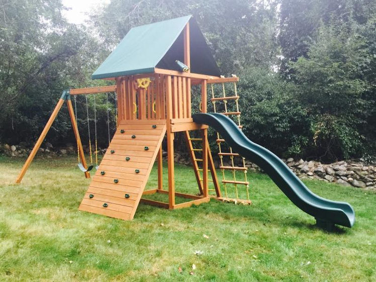 The Ultimate Wood Swing Set is sure to impress every family on your block! With an impressive 12’ slide and 6’ rock-climbing wall, this backyard playground offers the “ultimate” outdoor fun. The large and sturdy structure can support children and adults, helping families to bond and play in every season.